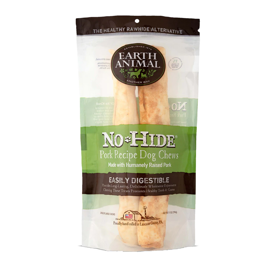 Since 1979, Earth Animal has been dedicated to helping pets live long, healthy lives by creating high-quality, wholesome foods, treats, herbal remedies, & supplements. As a holistic veterinary family, we share your goals of wellness and longevity for animals. No-Hides are 100% rawhide free and are made in the USA with Earth's finest ingredients. You can trust that every choice we make thoughtfully upholds our mission to preserve and enhance quality of life for all Earth’s animals. We will always be transparent about how No-Hides are made, our compassionate sourcing, and our selection of ingredients. No-Hides are the healthy alternative to rawhide: no synthetic chemicals, additives, bleaches, or formaldehydes. All No-Hides are packaged by weight, but on average the Small Roll is approximately 4”, Medium Roll is approximately 7”, and Large Roll is approximately 11” long. Earth Animal dedicates 1% of annual net sales to efforts that preserve and enhance quality of life for animals, people, and the Earth.