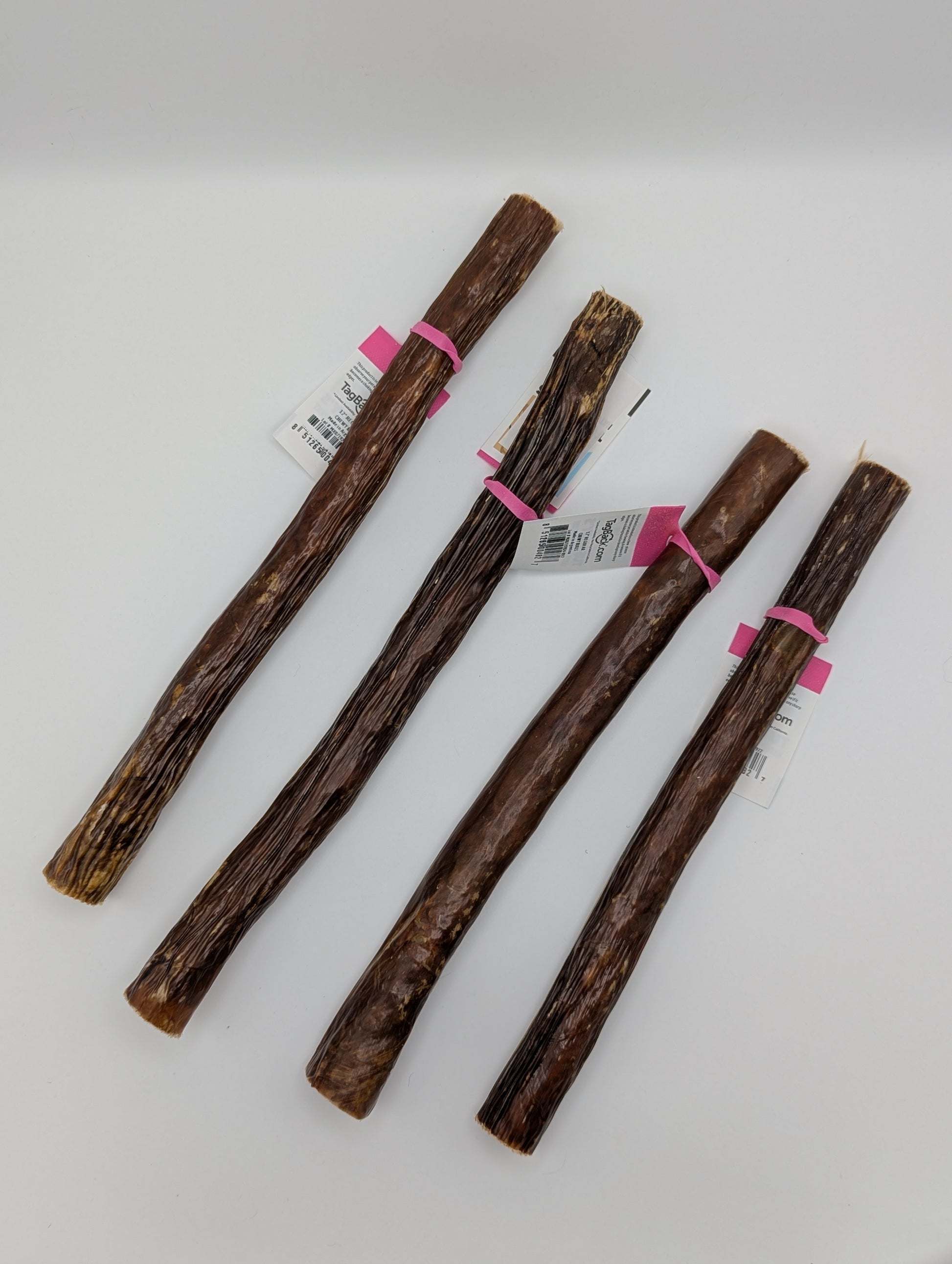 Tuesday's 12-Inch Chewy Bully Stick is a premium, all-natural chew your dog will love. Made from high-protein beef, it's fully digestible and helps support dental health by reducing plaque and tartar buildup. Perfect for medium to large dogs, this long-lasting treat satisfies chewing instincts while providing a tasty, wholesome snack.